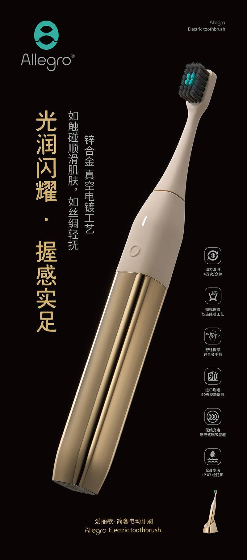 冲破保守牙刷“一体式”布局,旗下品牌Allegro爱丽歌的定名灵感源自音乐术语,其智能压力系统获中国口腔洁净护理用品工业协会“手艺立异金”,