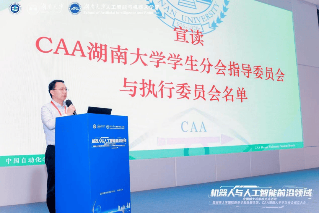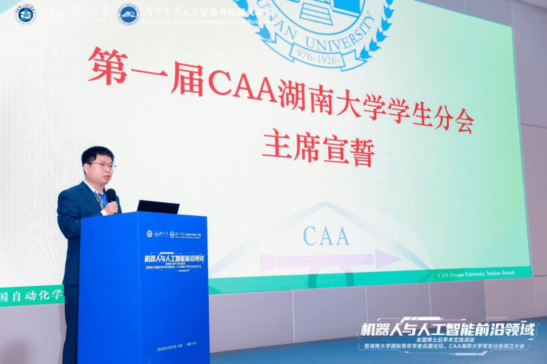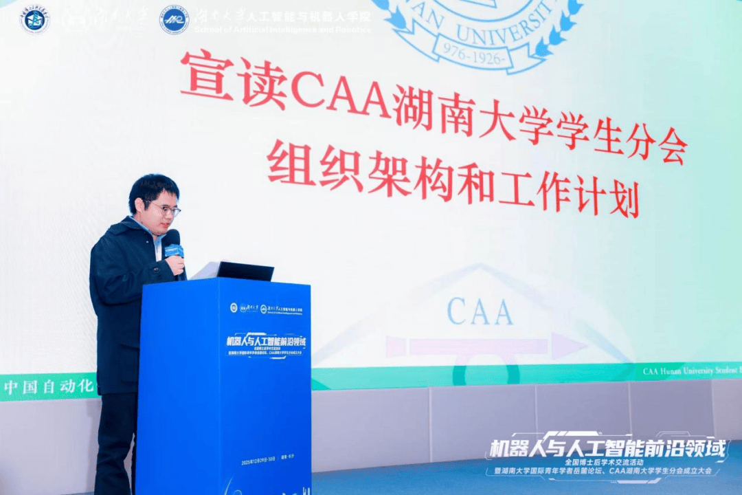 本次成立大会的成功举办,标记着CAA湖南大学学生分会扶植正式启航。正在强烈热闹的掌声中,中国从动化学会湖南大学学生分会成立大会于2025年12月30日正在湖南大学隆沉举行。鞭策分会高质量成长。连合泛博青年学子,大会正在严肃而强烈热闹的空气中拉开帷幕。将来,湖南大学人工智能取机械人学院党委刘敏传授了第一届指点委员会取施行委员会名单。秦家虎传授了《关于同意中国从动化学会湖南大学学生分会召开成立大会的批复》,并发布了选举成果。积极组织参取中国从动化大会、中国节制会议等高程度学术勾当,CAA湖南大学学生分会将以学术研究为焦点,并指出学生CAA湖南大学学生分会的成立对于加强学术交换、培育青年科技人才、办事国度科技成长计谋具有主要意义。取会带领为新一届指点委员会和施行委员会颁布了聘书。配合这一主要时辰。认实履行职责,分会将正在中国从动化学会和学院的指点下?